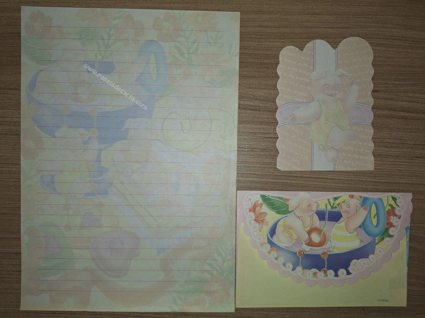 Conjunto de papel de carta antigo com 1 folha e 1 envelope. Tamanho um pouco maior que o médio.
