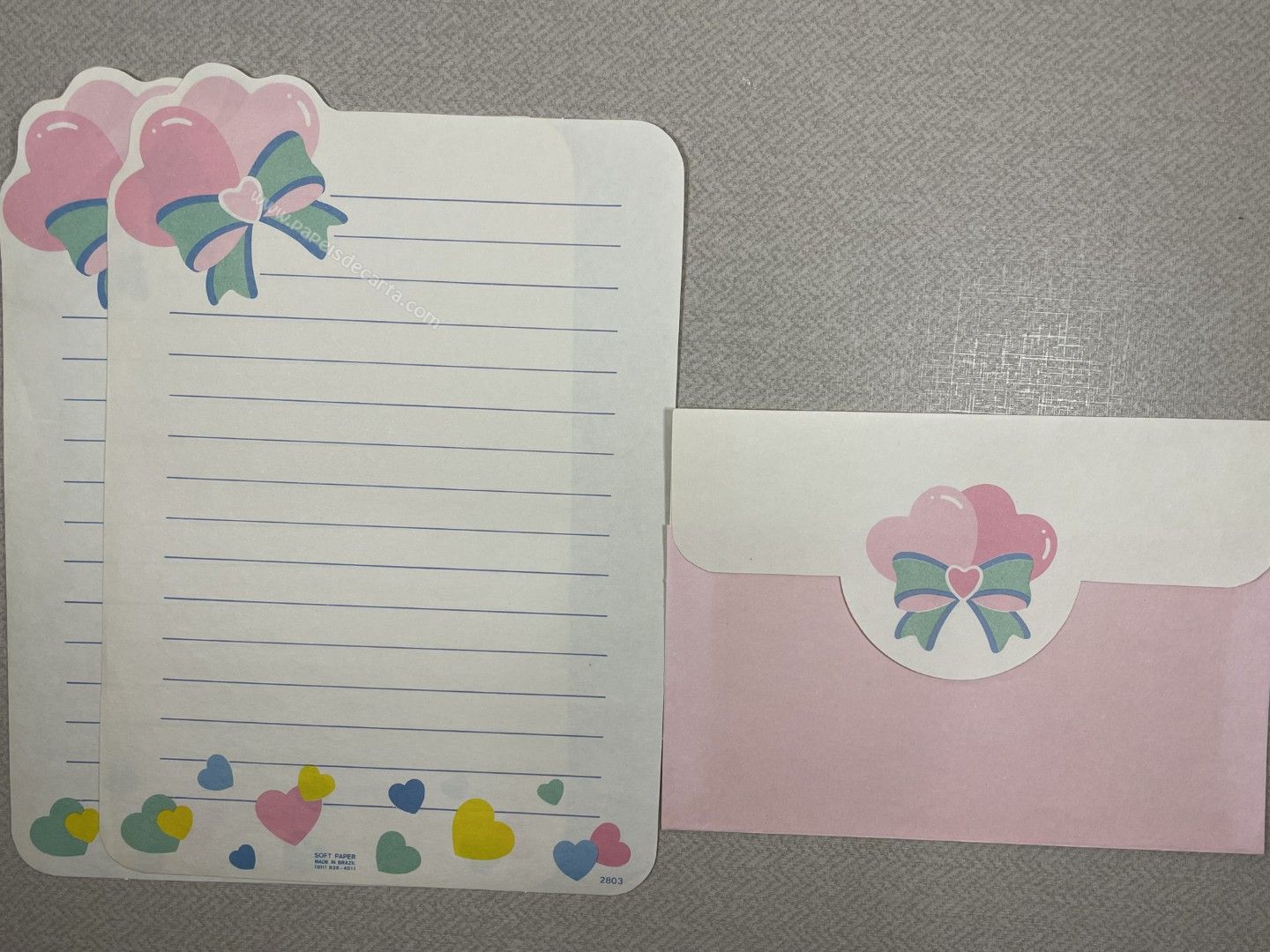 Conjunto de papel de carta antigo com 2 folhas e 1 envelope. Tamanho médio.