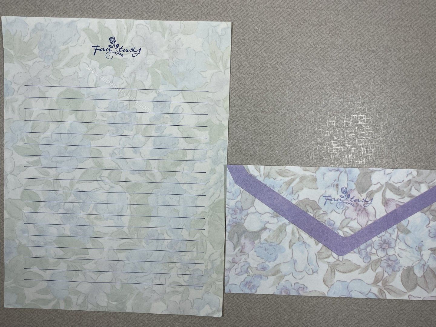 Conjunto de papel de carta antigo com 1 folha e 1 envelope. Tamanho médio.