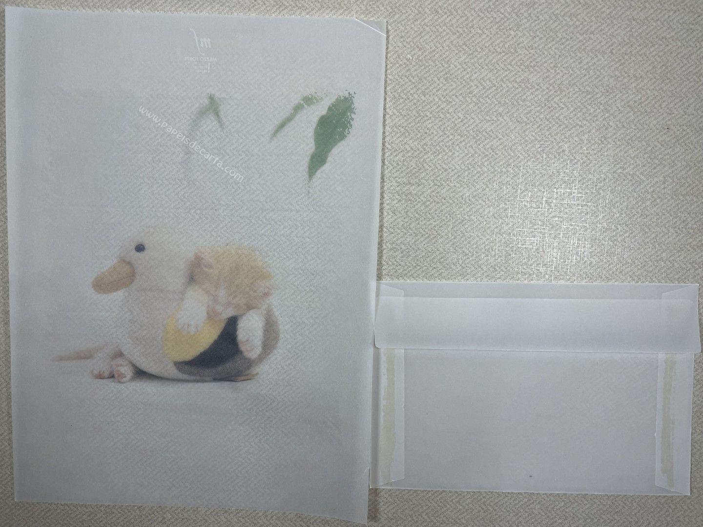 Conjunto de papel de carta antigo com 1 folha e 1 envelope. Tamanho médio. Esse conjunto é em papel vegetal e a pontinha foi dobrada.