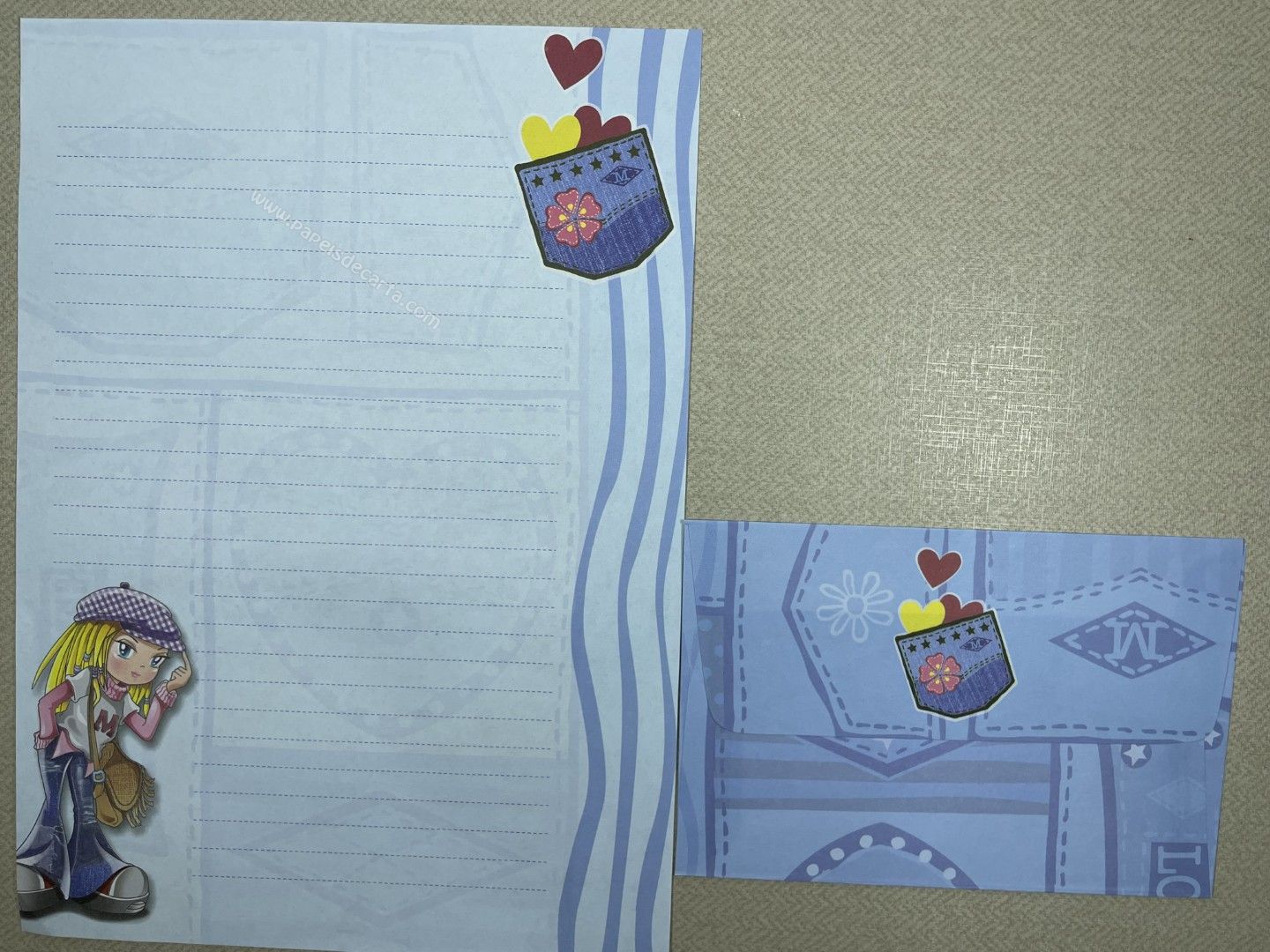 Conjunto de papel de carta antigo com 1 folha e 1 envelope. Tamanho um pouco maior que o médio.
