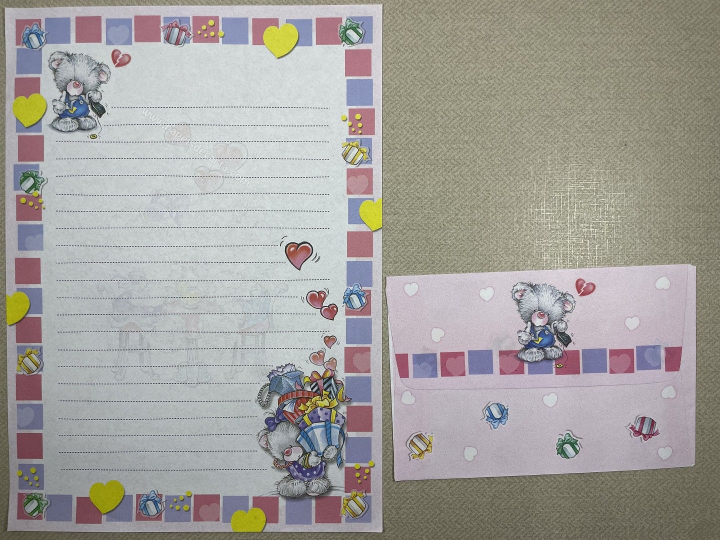 Conjunto de papel de carta antigo com 1 folha e 1 envelope. Tamanho um pouco maior que o médio.