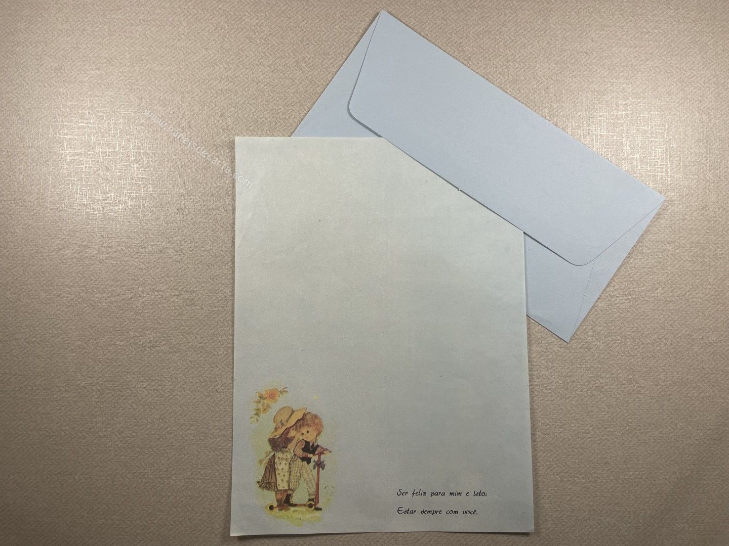 Conjunto de papel de carta antigo com 1 folha e 1 envelope. Tamanho médio.