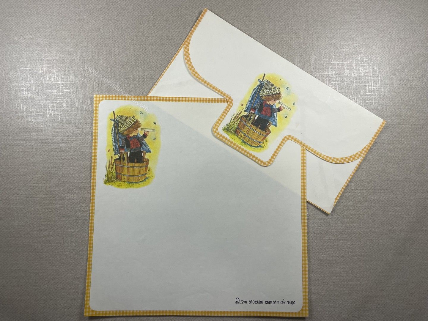 Conjunto de papel de carta antigo com 1 folha e 1 envelope. Tamanho médio. **PAPEL COM AVARIA. VER FOTO. **