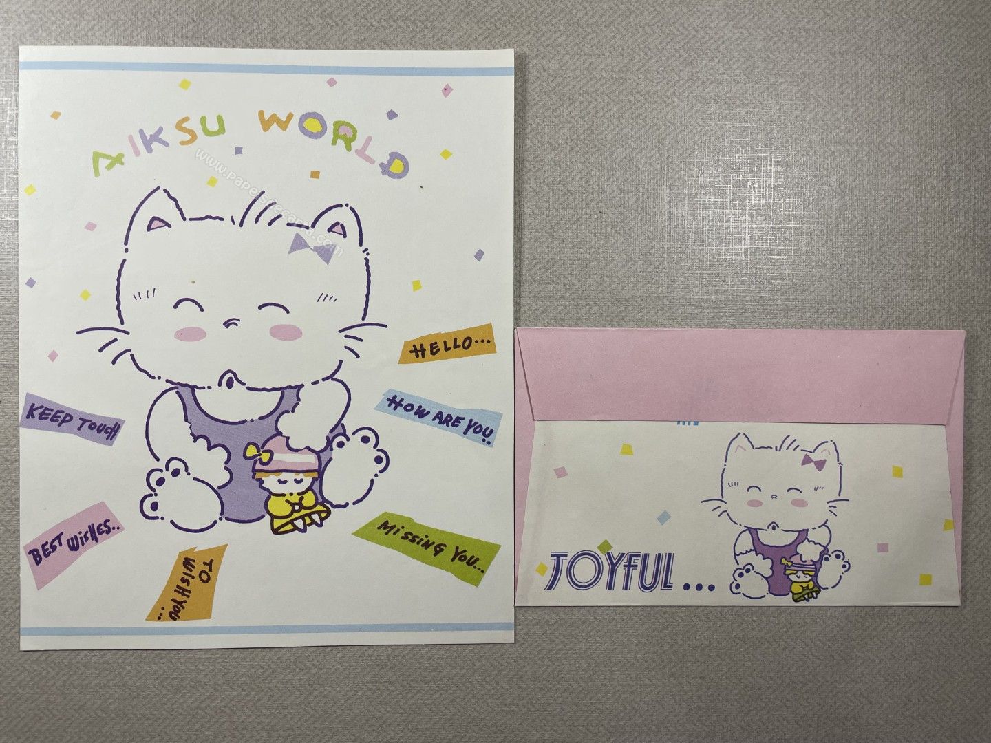 Conjunto de papel de carta antigo com 1 folha e 1 envelope. Tamanho médio.