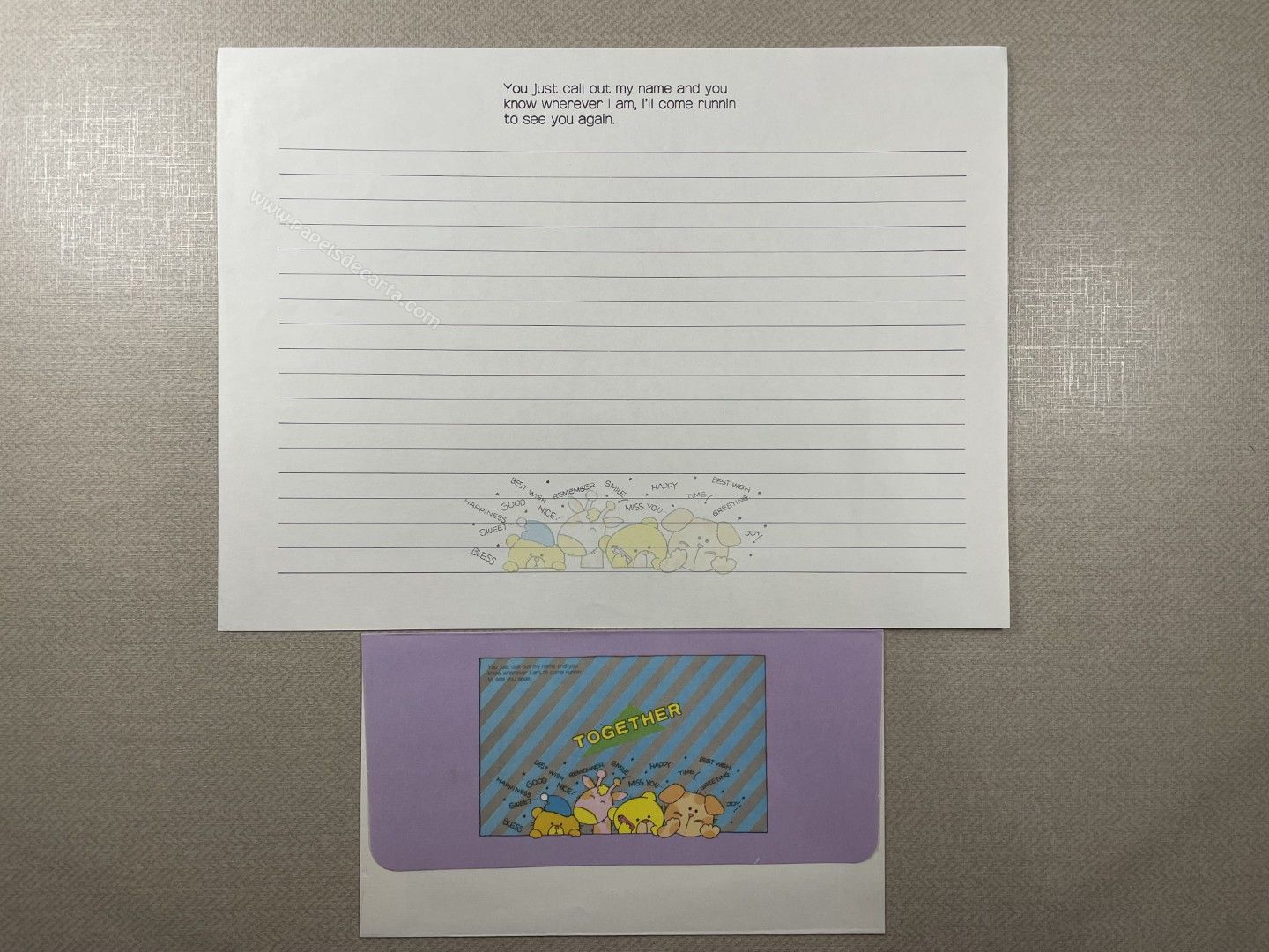 Conjunto de papel de carta antigo com 1 folha e 1 envelope. Tamanho médio.