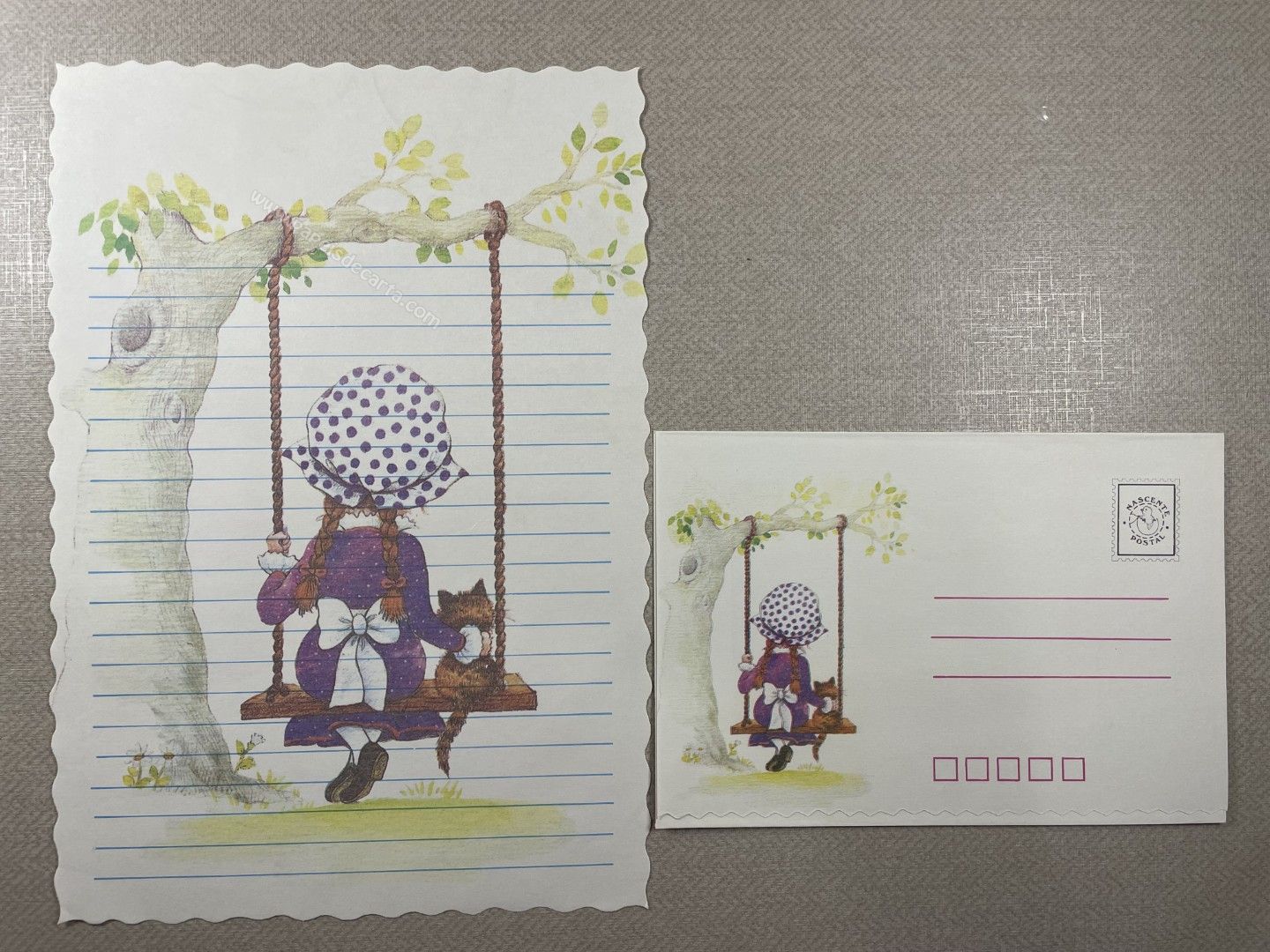 Conjunto de papel de carta antigo com 1 folha e 1 envelope. Tamanho médio.