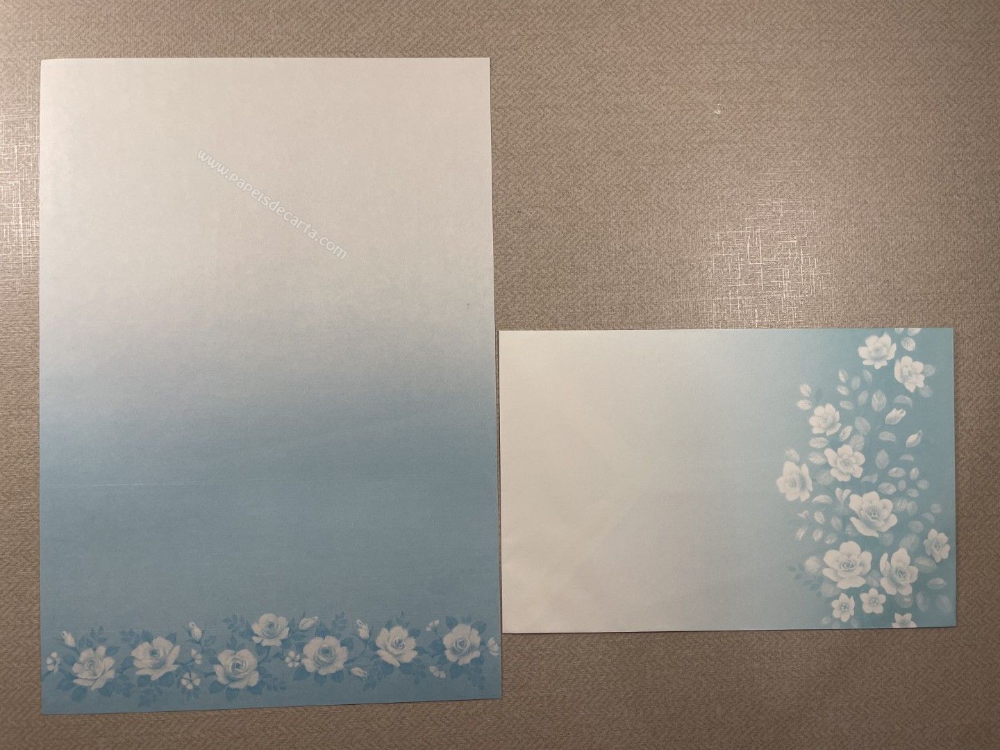 Conjunto de papel de carta antigo com 1 folha e 1 envelope. Tamanho médio.