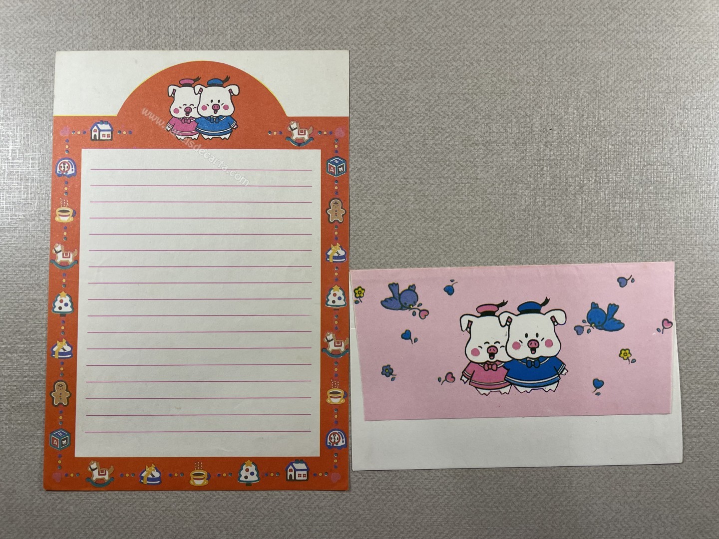 Conjunto de papel de carta antigo com 1 folha e 1 envelope. Tamanho médio.