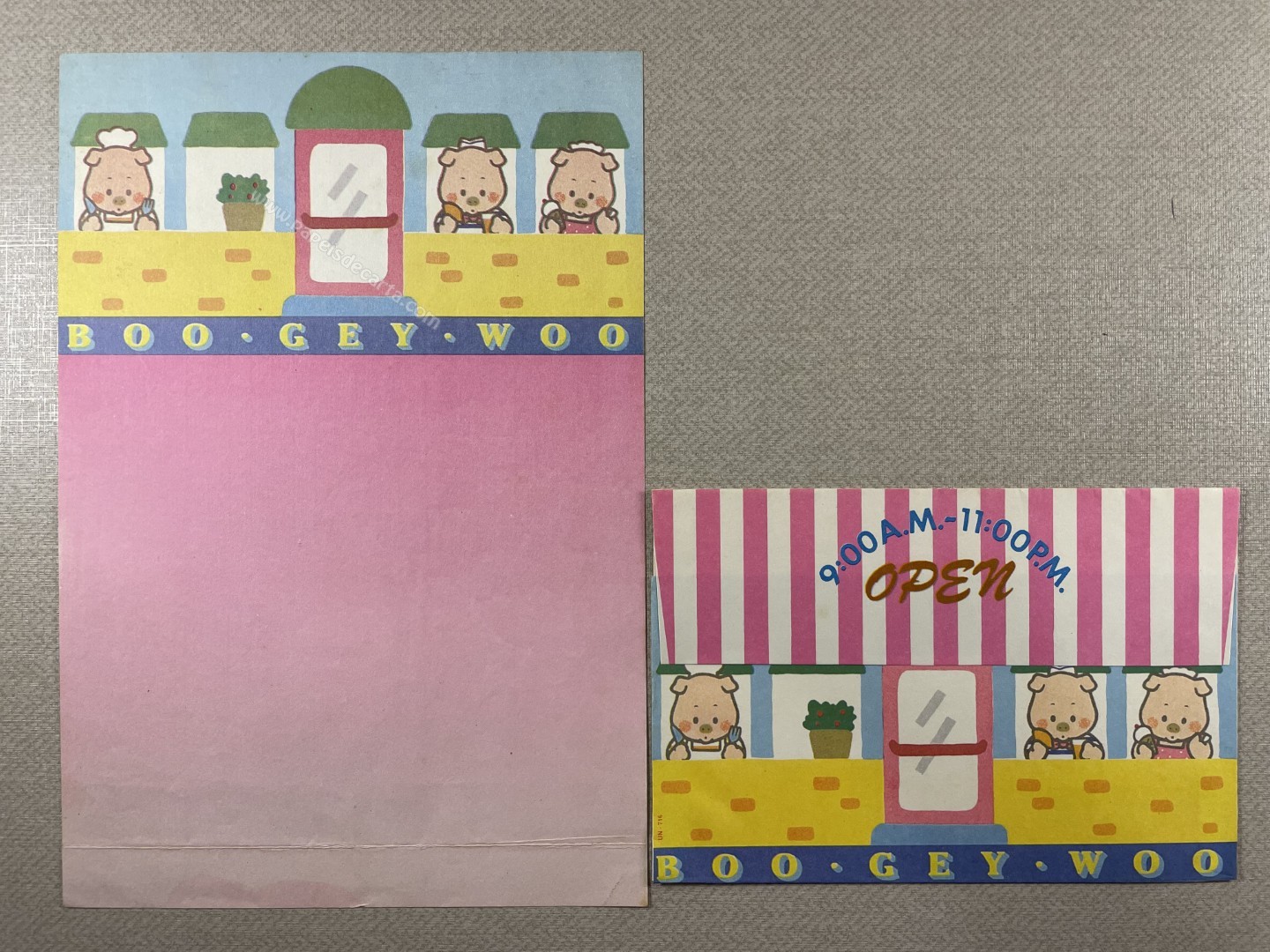 Conjunto de papel de carta antigo com 1 folha e 1 envelope. Tamanho médio.