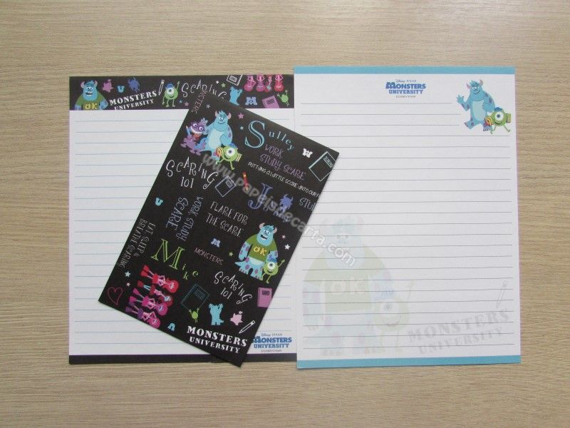 Conjunto importado, de papel de carta do Monsters University, com 2 folhas diferentes e 1 envelope, da Disney.