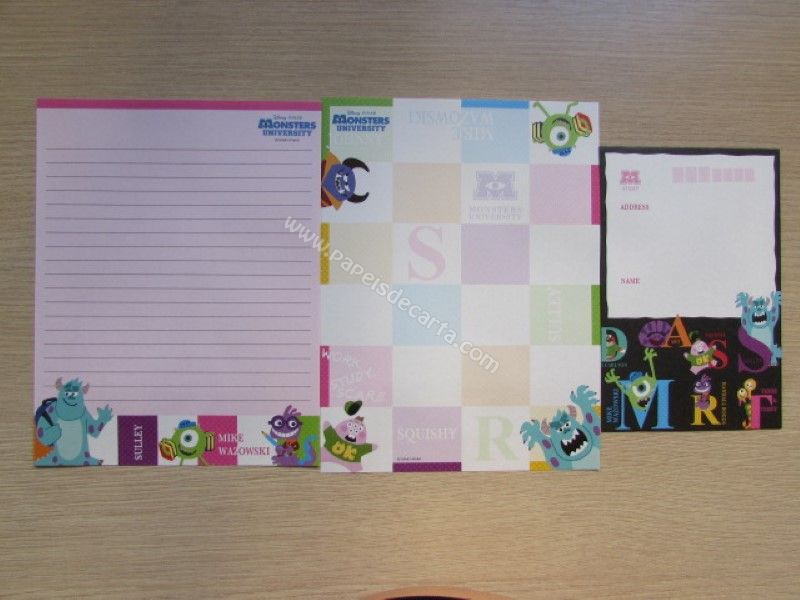 Conjunto com 2 folhas e 1 envelope do Monsters University 13