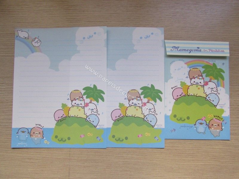 Conjunto importado, de papel de carta do Mamegoma, com 2 folhas iguais e 1 envelope, da San-X.