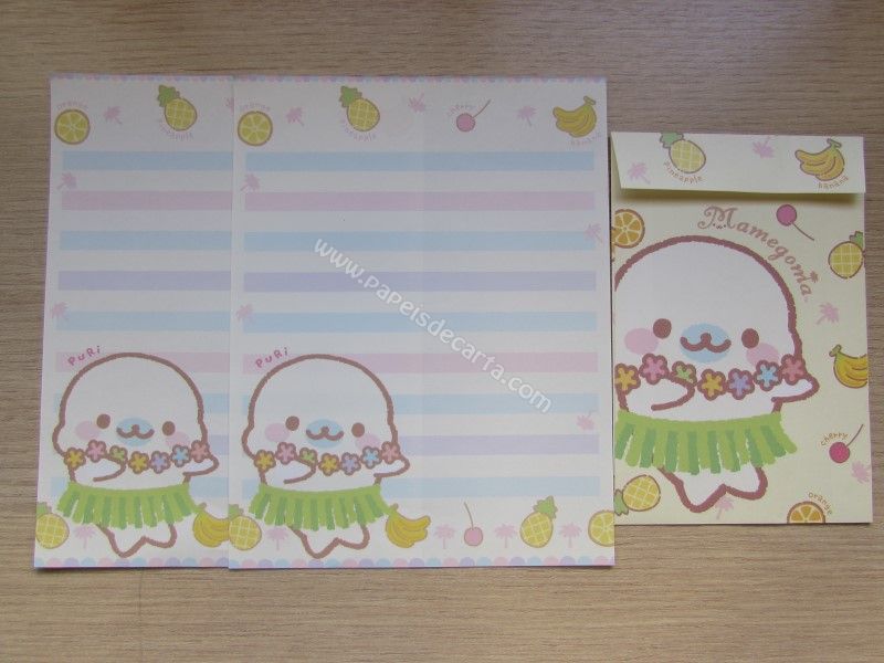 Conjunto importado, de papel de carta do Mamegoma, com 2 folhas iguais e 1 envelope, da San-X.