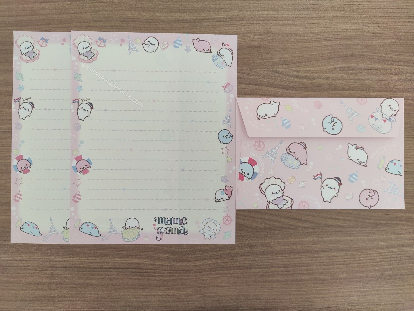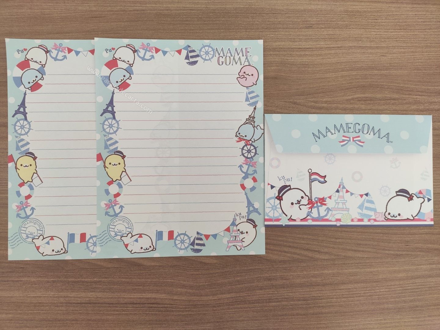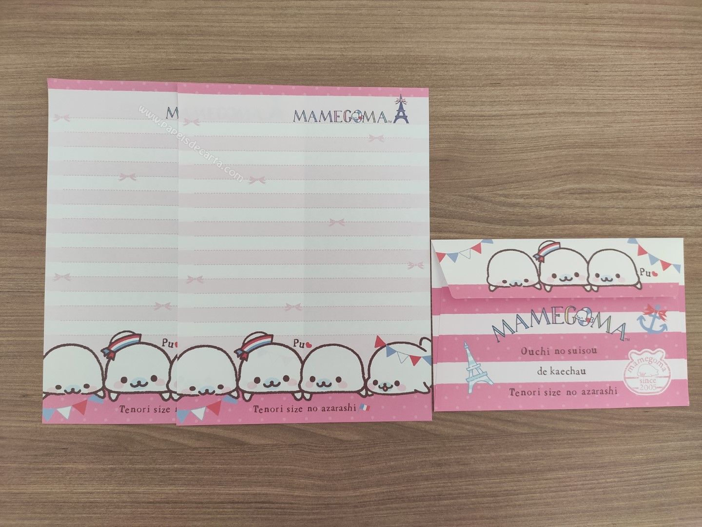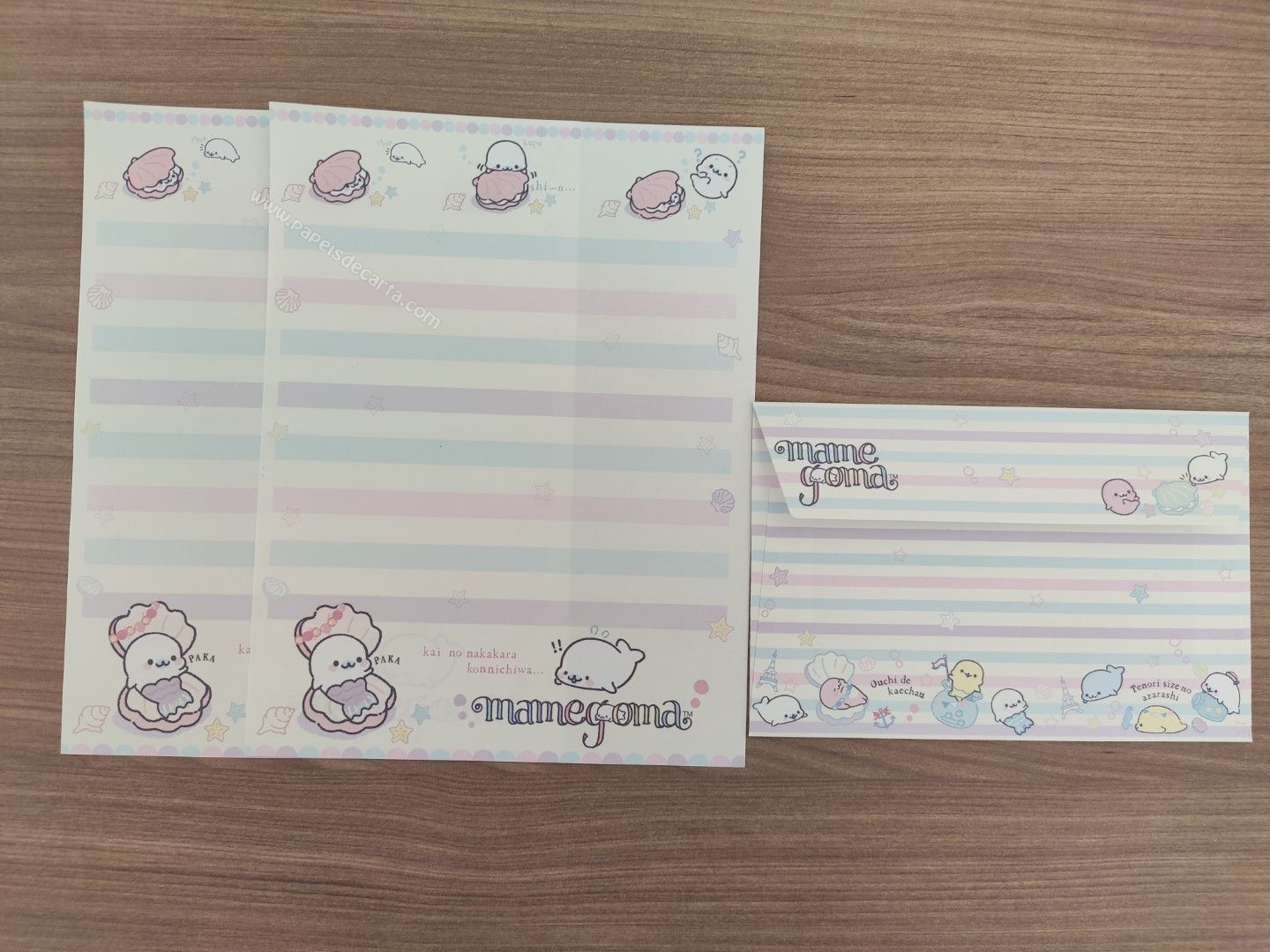 Lote de papel de carta importado do Mamegoma,com 4 conjuntos, sendo 2 folhas iguais e 1 envelope cada conjunto, da San-X.