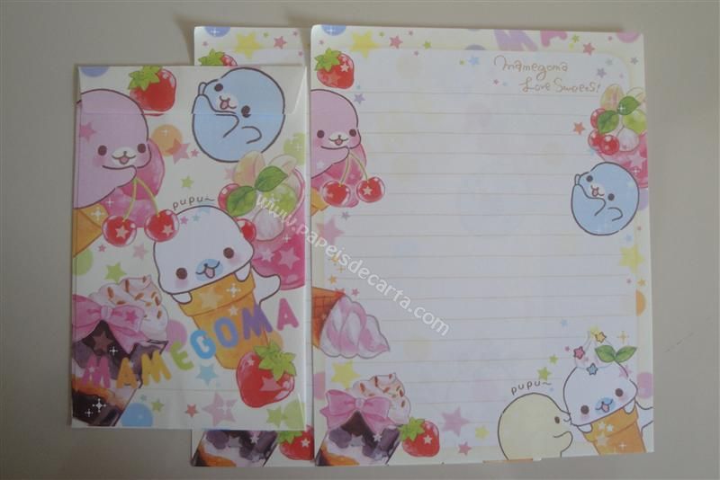 Conjunto importado, de papel de carta com 2 folhas iguais e 1 envelope do Mamegoma.