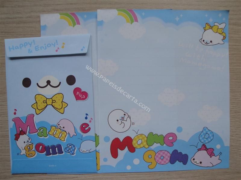 Conjunto importado, de papel de carta com 2 folhas iguais e 1 envelope do Mamegoma.