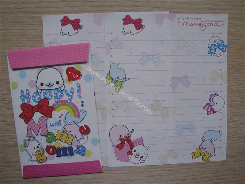 Conjunto importado, de papel de carta com 2 folhas iguais e 1 envelope do Mamegoma.