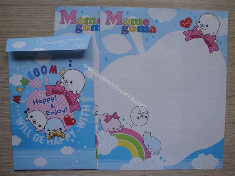 Conjunto importado, de papel de carta com 2 folhas iguais e 1 envelope do Mamegoma.