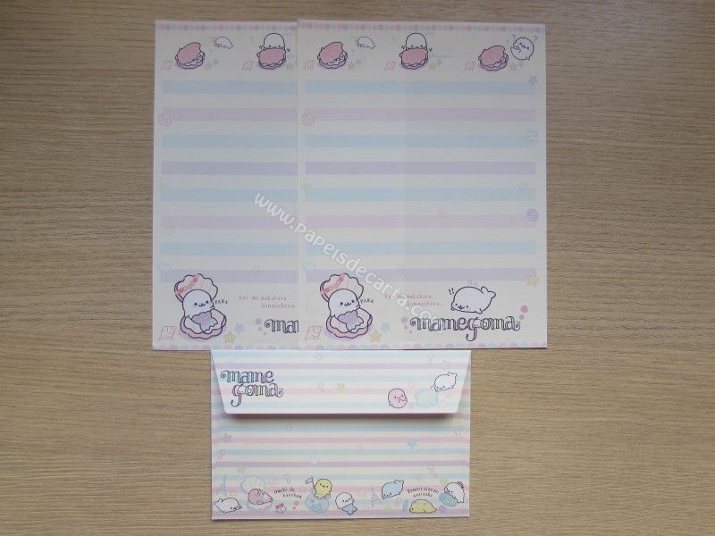 Conjunto importado, de papel de carta do Mamegoma, com 2 folhas iguais e 1 envelope, da San-X.