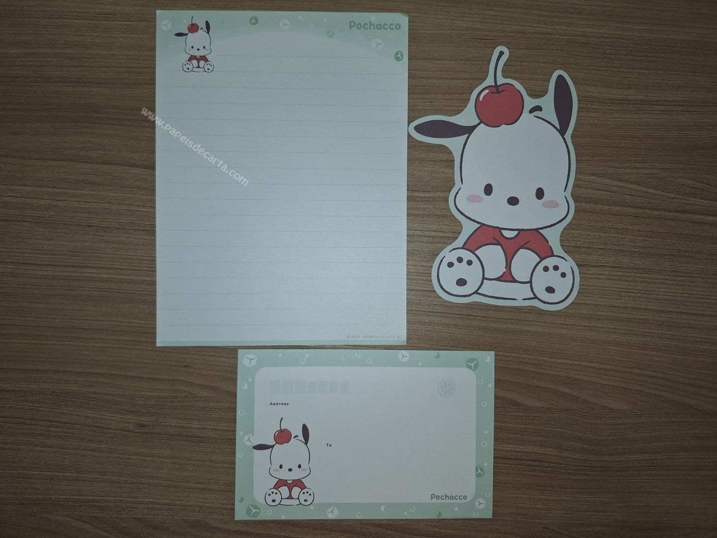 Conjunto de papel de carta importado, do Pochacco da Sanrio, com 2 folhas e 1 envelope.