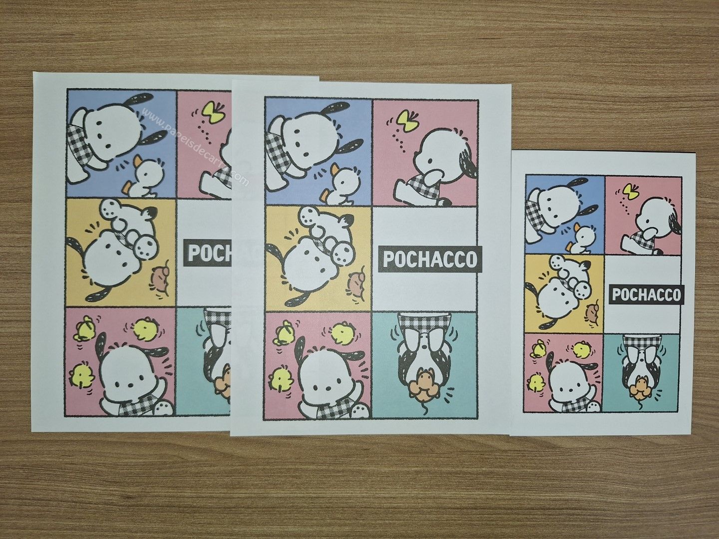 Conjunto de papel de carta importado, do Pochacco da Sanrio, com 2 folhas e 1 envelope.