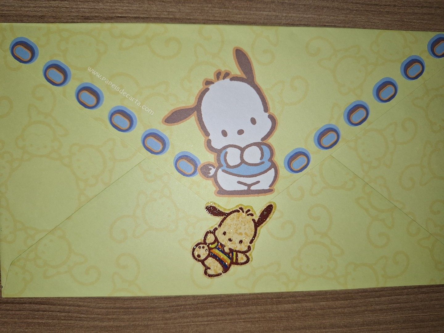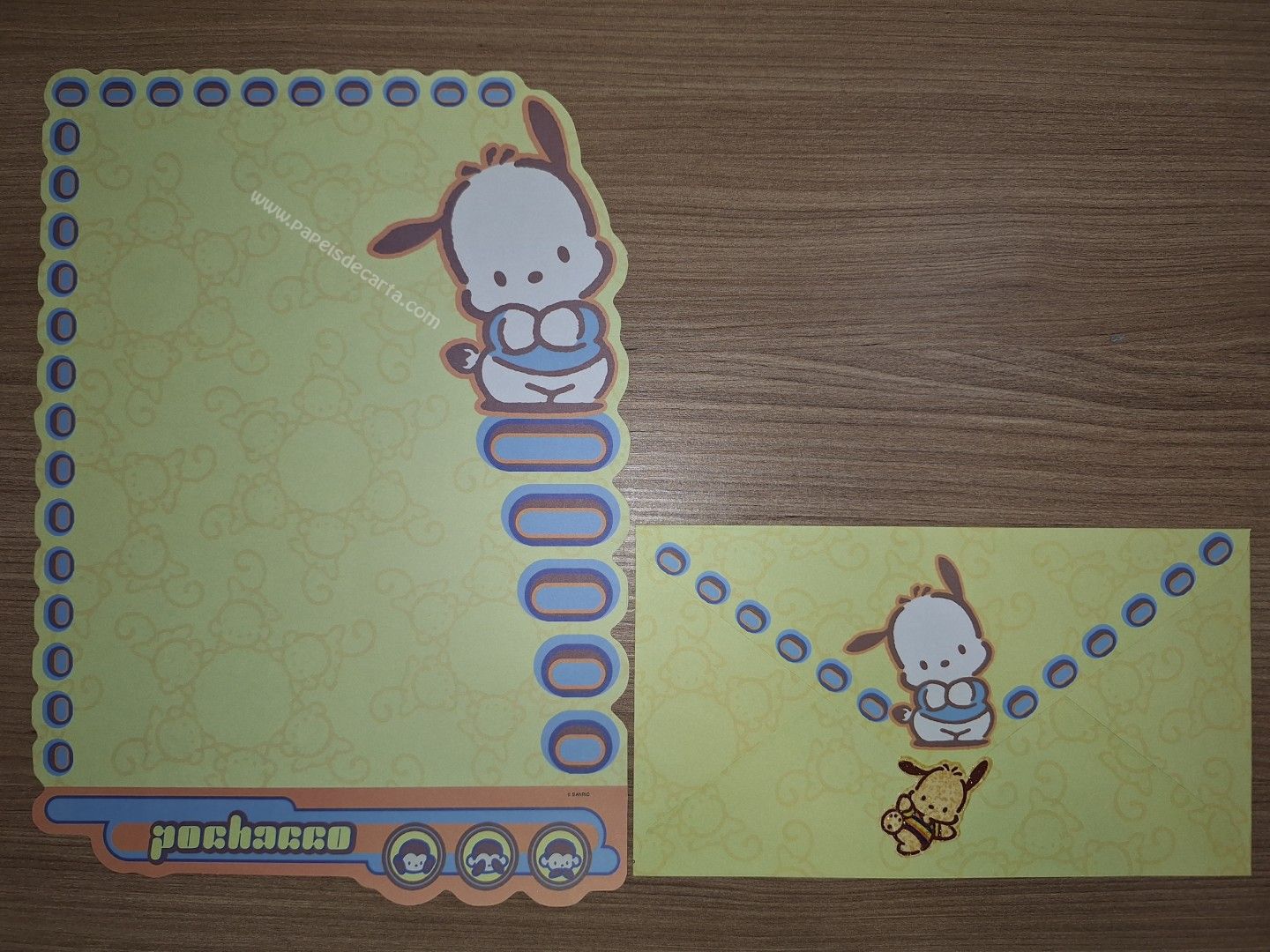 Conjunto de Papel de carta, do Pochacco da Sanrio, com 1 folha e 1 envelope, tamanho um pouco maior que o médio, Larg: 18,5cm x alt: 26cm. ** O ENVELOPE ESTÁ COLADO COM UM ADESIVO. VER FOTO. **