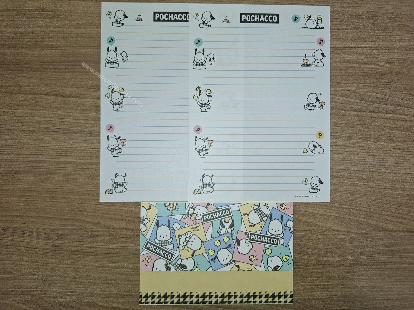 Conjunto de Papel de carta, do Pochacco da Sanrio, com 2 folhas iguais e 1 envelope.