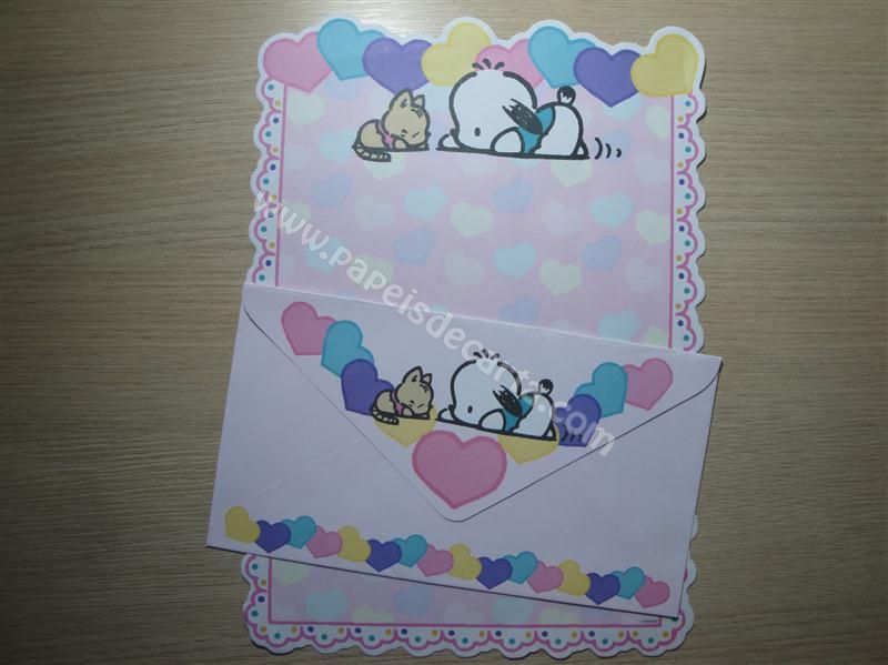 Conjunto importado, de papel de carta com 1 folha e 1 envelope do Pochacco.