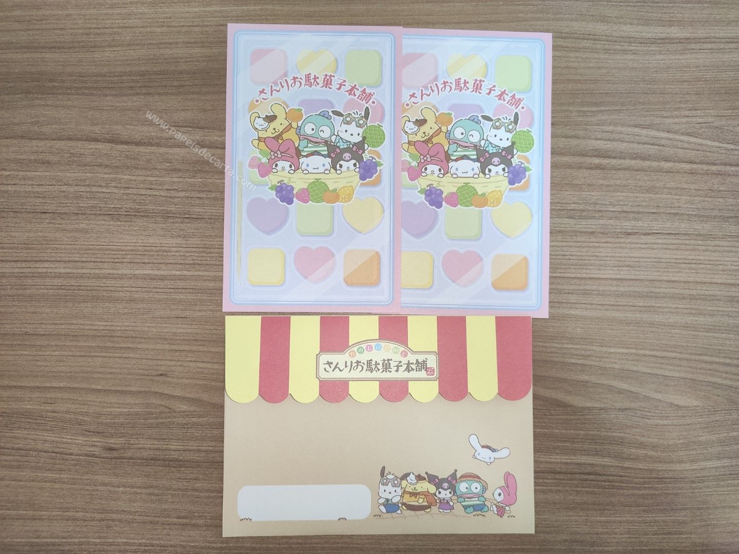 Conjunto de papel de carta importado com 2 folhas e 1 envelope da Sanrio Characters. Tamanho pequeno.