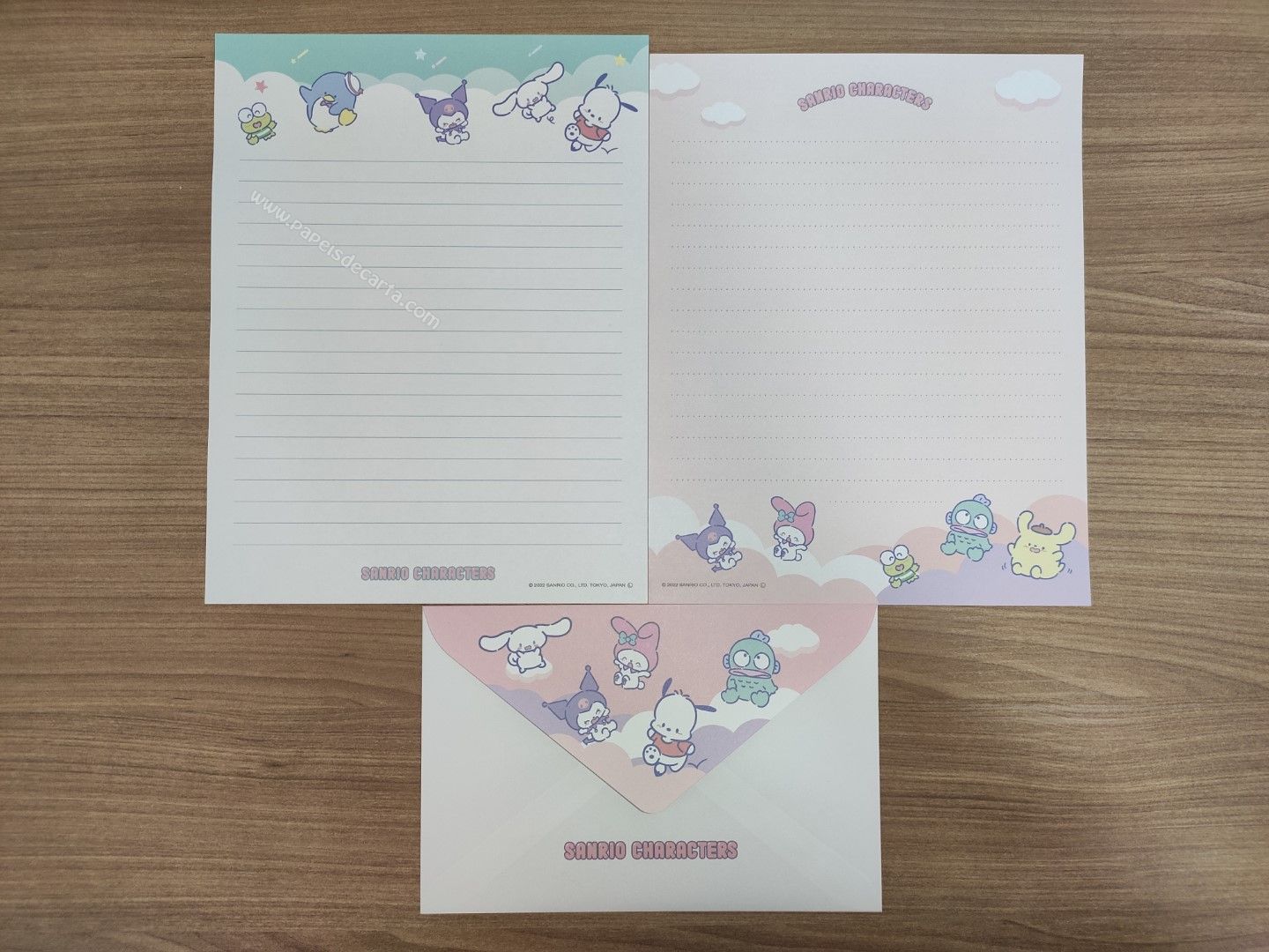 Conjunto de papel de carta importado com 2 folhas e 1 envelope da Sanrio Characters.