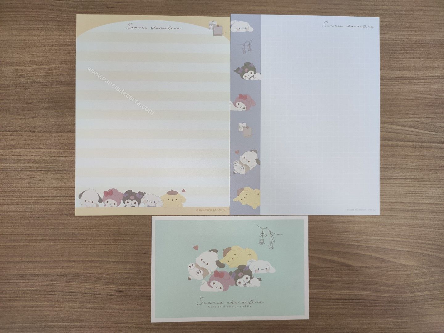 Conjunto de papel de carta importado com 2 folhas e 1 envelope da Sanrio Characters.