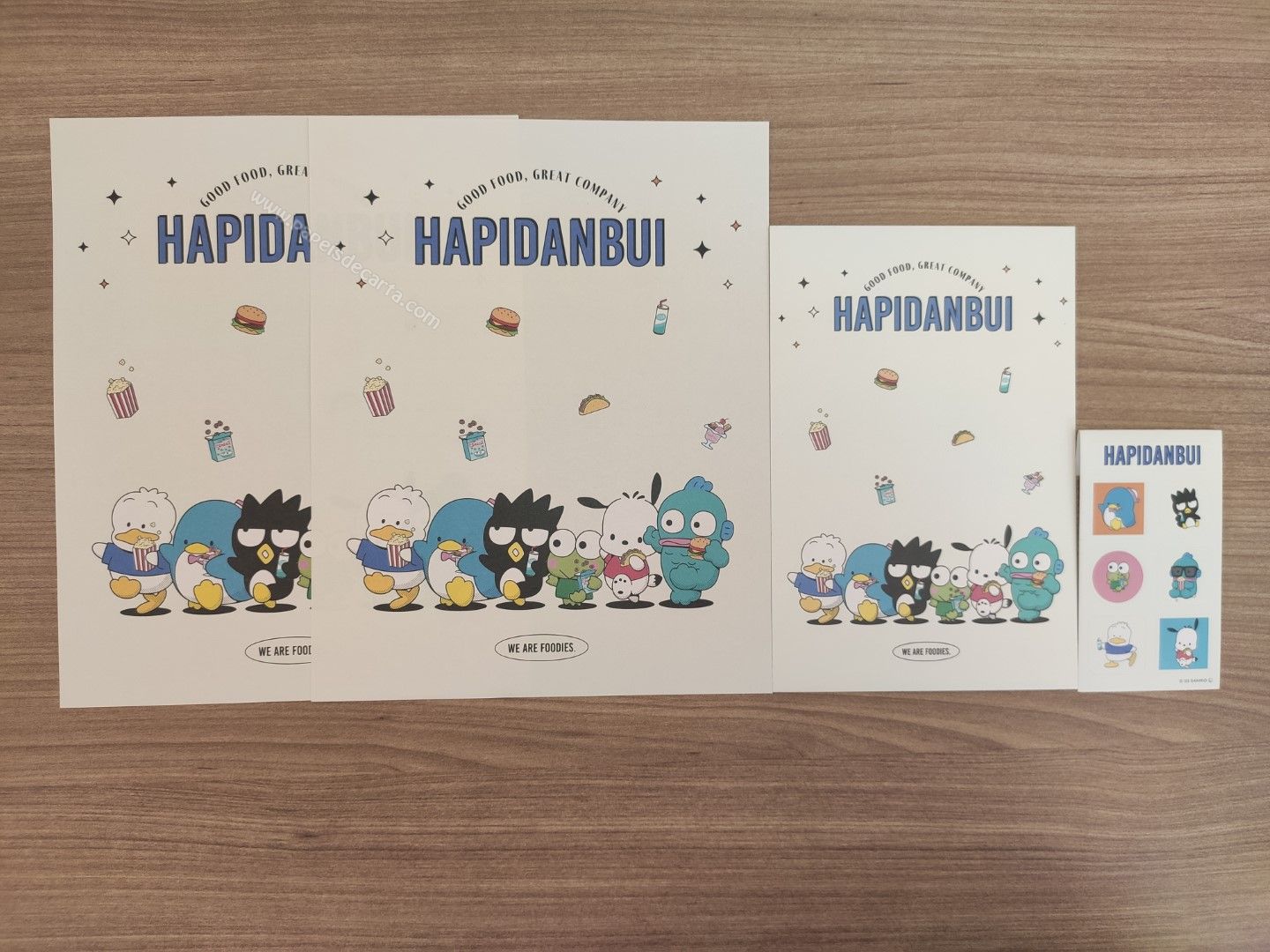 Conjunto de papel de carta importado com 2 folhas e 1 envelope, e 1 cartelinha de adesivos da Sanrio Characters.