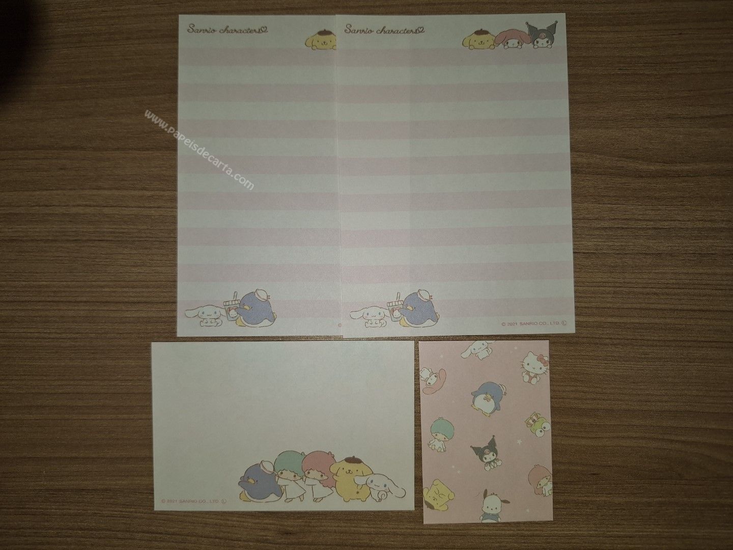 MINI Conjunto de papel de carta importado com 2 folhas e 2 envelopes, da Sanrio Characters.
