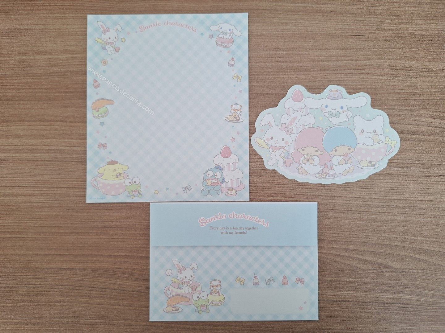 Conjunto de papel de carta importado com 2 folhas e 1 envelope, da Sanrio Characters.