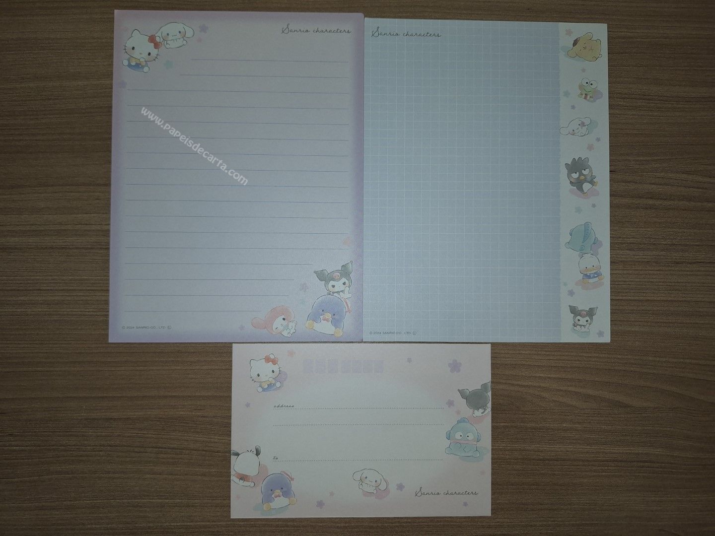 Conjunto de papel de carta importado com 2 folhas e 1 envelope, da Sanrio Characters.