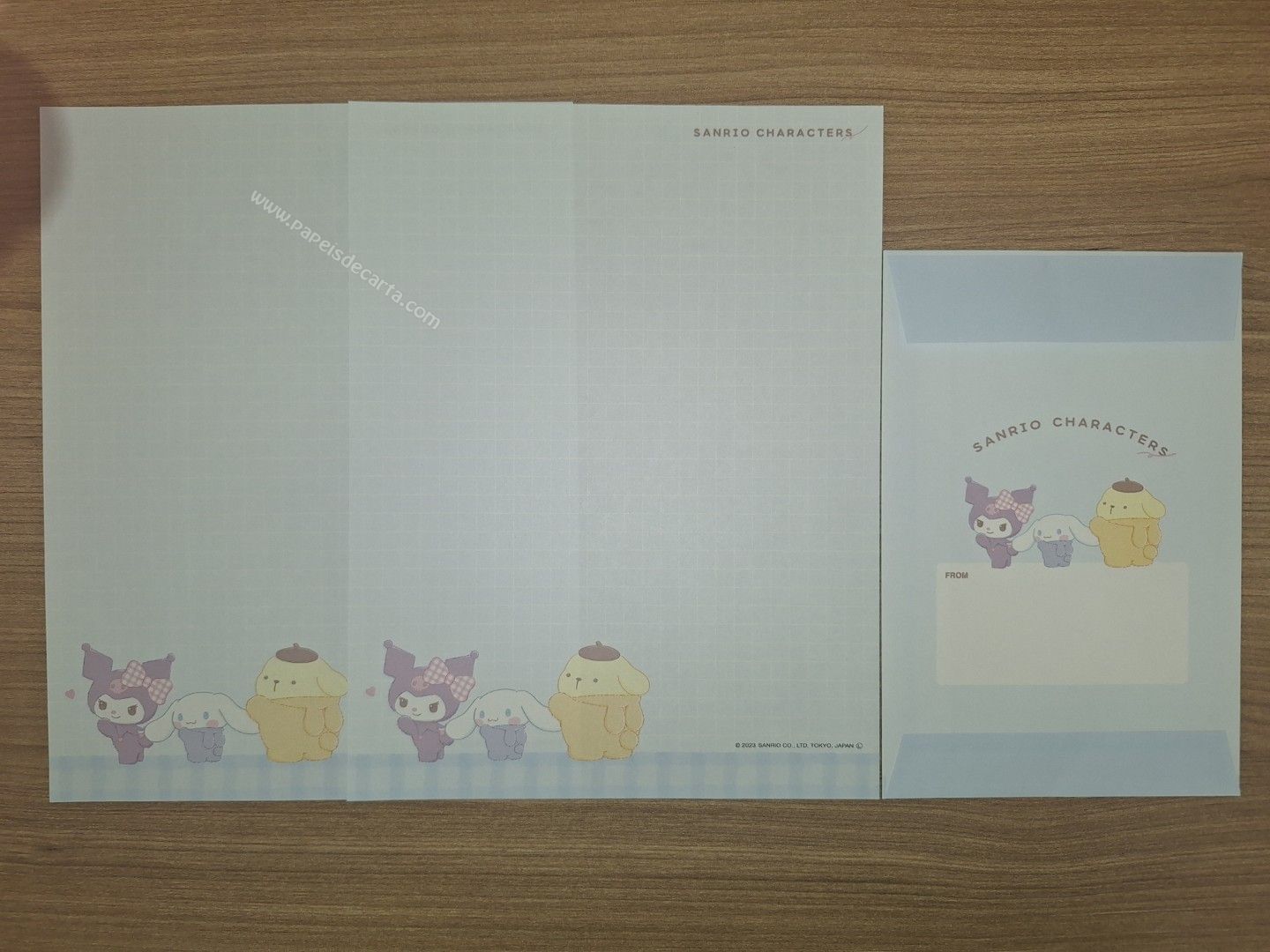 Conjunto de papel de carta importado com 2 folhas e 1 envelope, da Sanrio Characters.