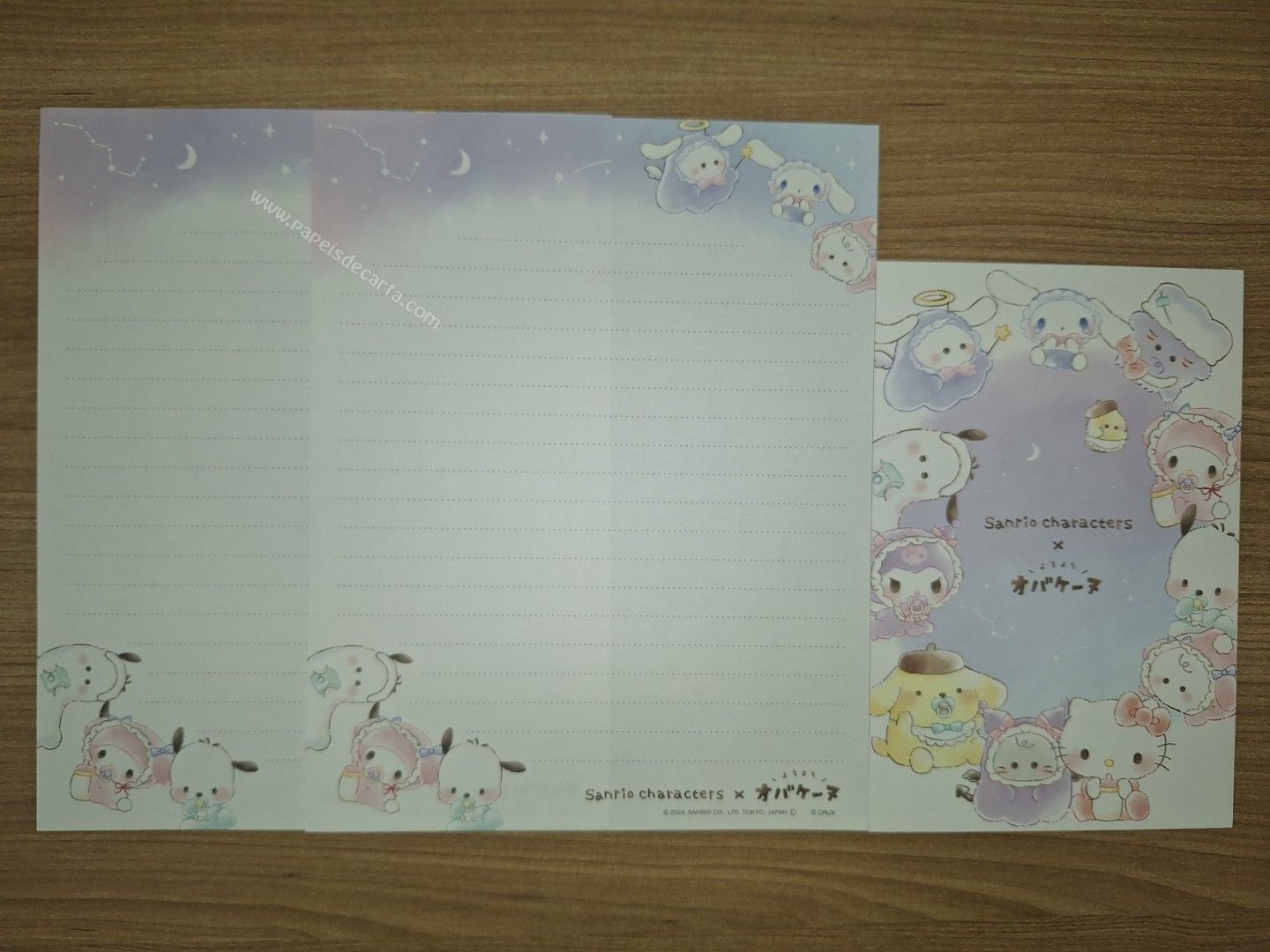 Conjunto de papel de carta importado com 2 folhas e 1 envelope, da Sanrio Characters.