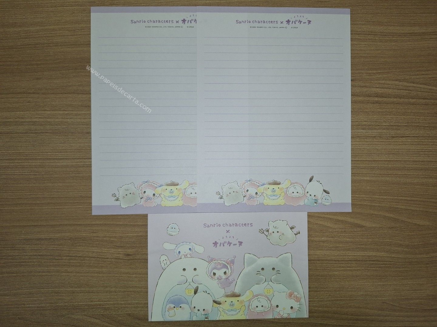 Conjunto de papel de carta importado com 2 folhas e 1 envelope, da Sanrio Characters.