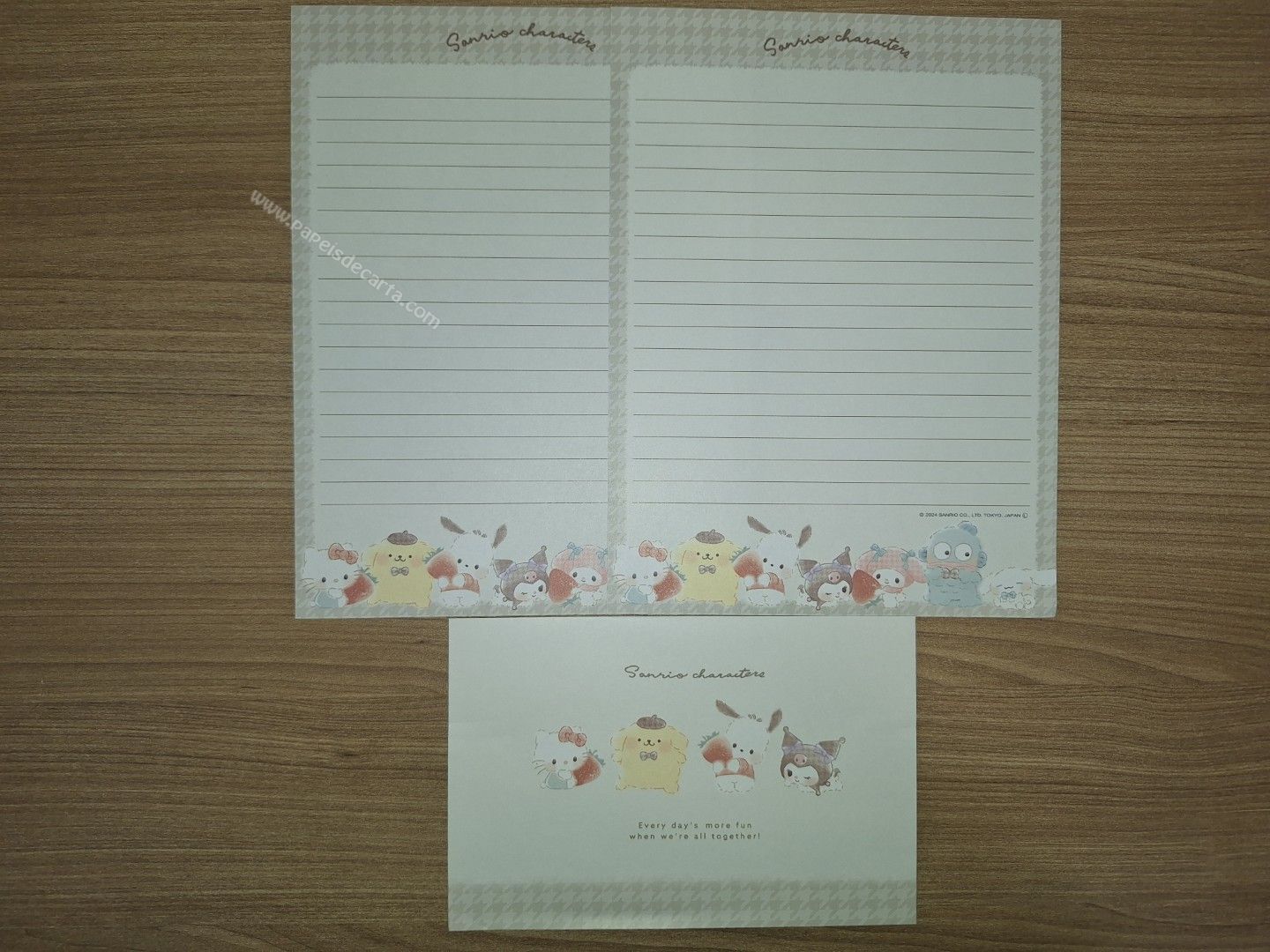 Conjunto de papel de carta importado com 2 folhas e 1 envelope, da Sanrio Characters.