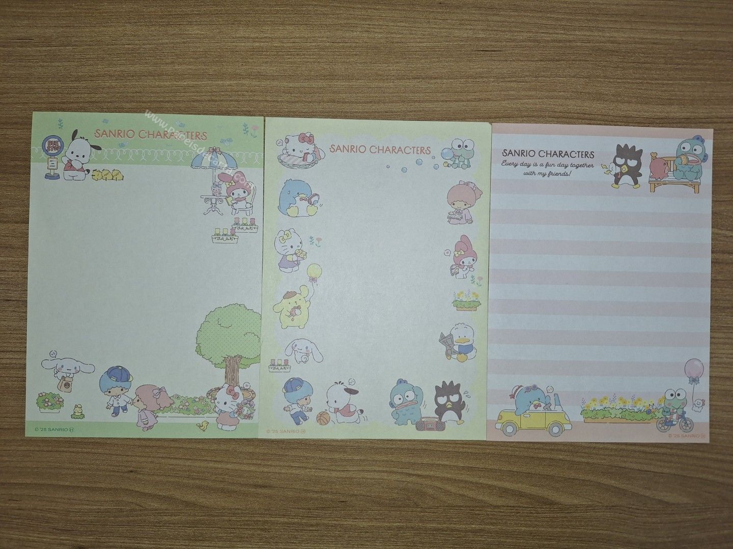 Lote com 3 papéis de carta pequenos importados da Sanrio Characters.