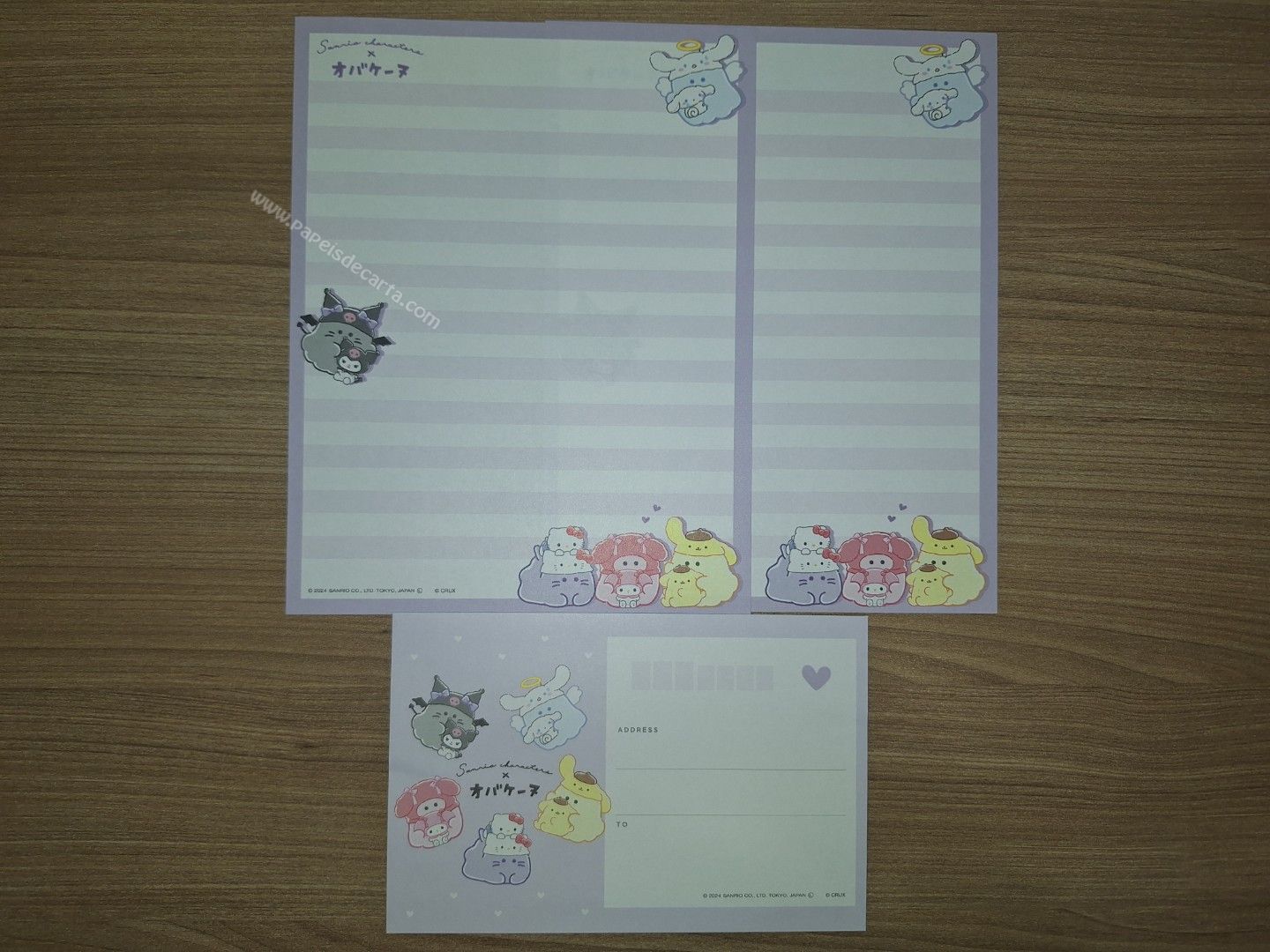 Conjunto de papel de carta importado com 2 folhas e 1 envelope, da Sanrio Characters X Obakenu.