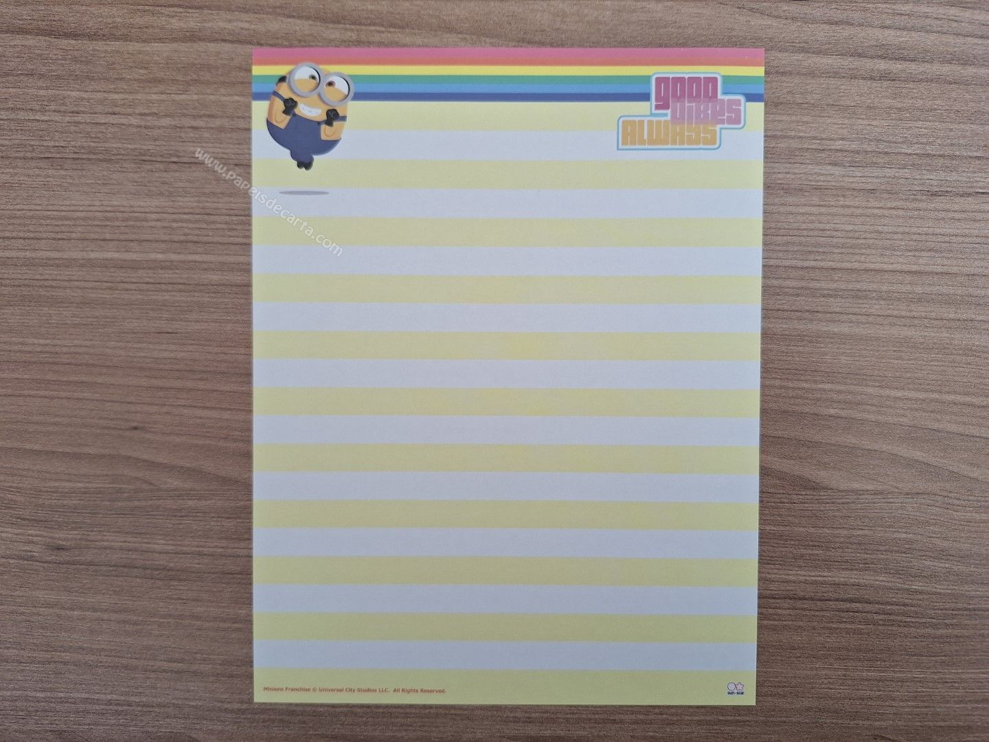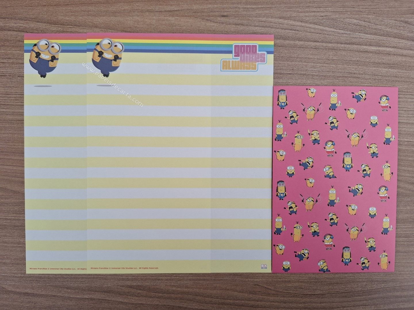 Papel de carta importado dos Minions - Despicable me, com 2 folhas e 1 envelope.