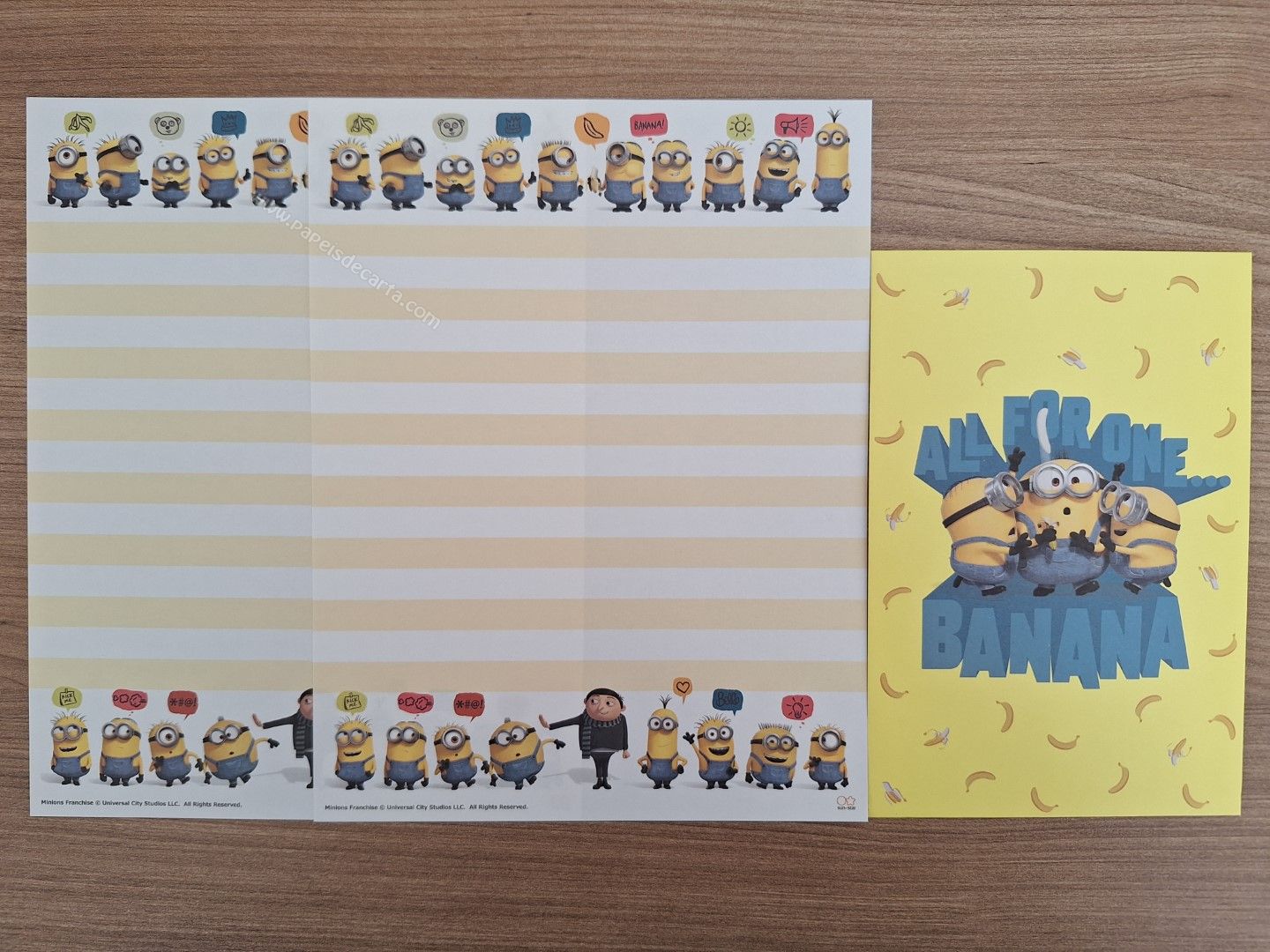 Papel de carta importado dos Minions - Despicable me, com 2 folhas e 1 envelope.