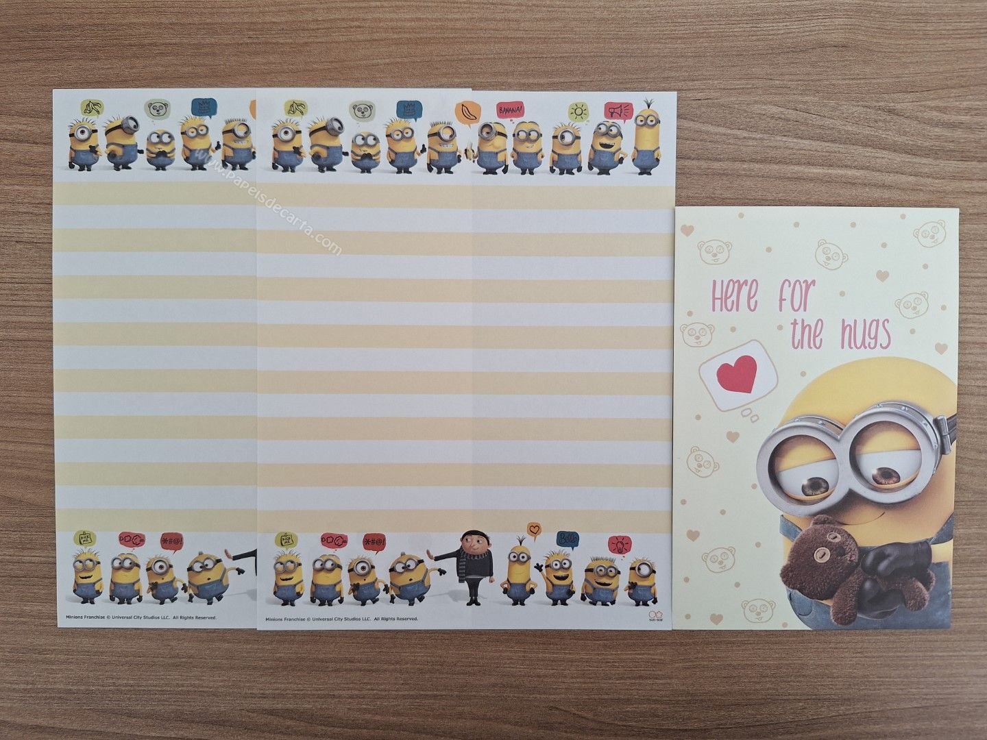 Papel de carta importado dos Minions - Despicable me, com 2 folhas e 1 envelope.