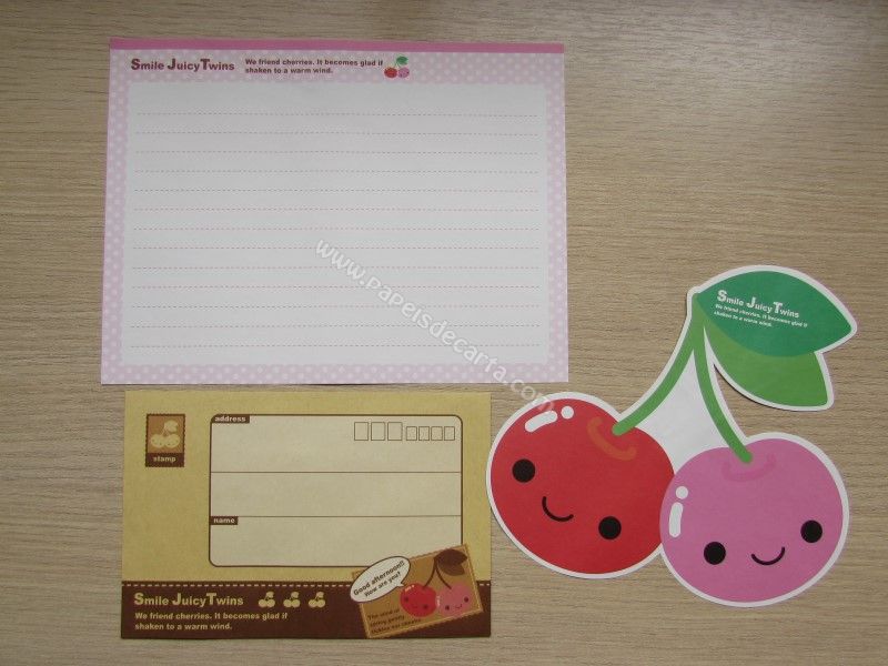 Conjunto importado, de papel de carta com 2 folhas diferentes e 1 envelope da coleção Smile Pocket.
