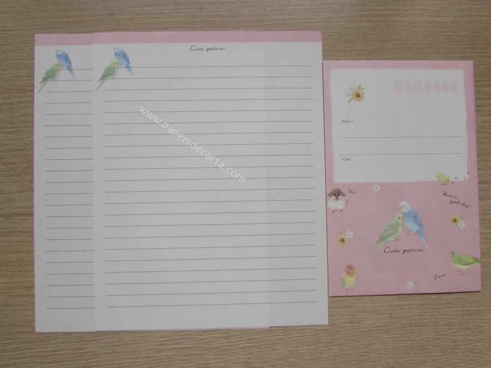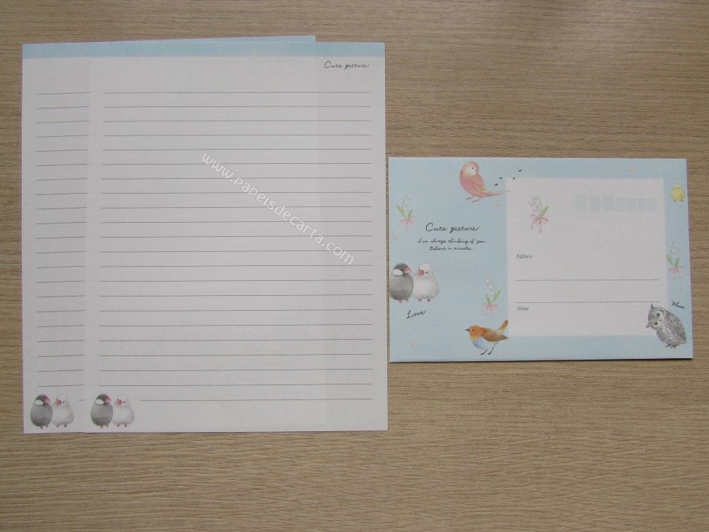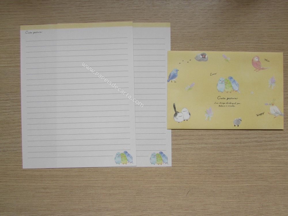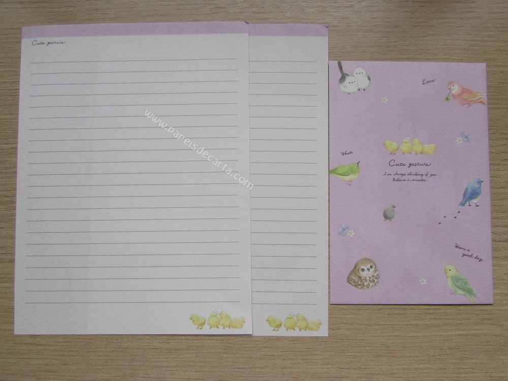 Lote com 5 conjuntos importados, sendo 2 folhas iguais e 1 envelope cada conjunto, da coleção Cute gesture.