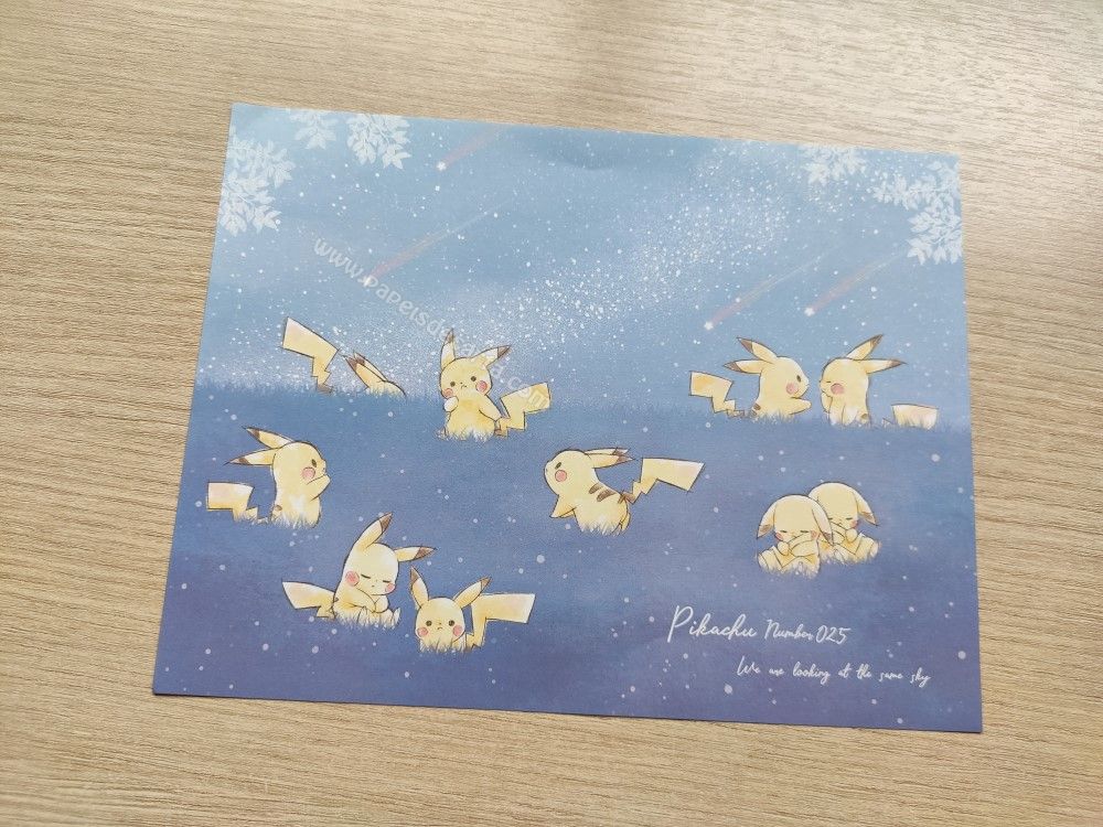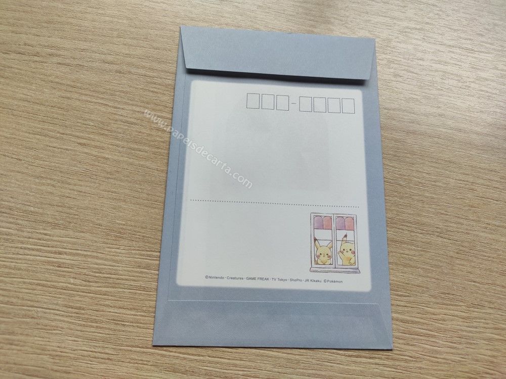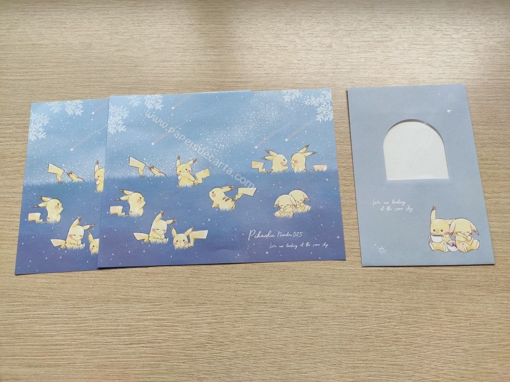 Conjunto importado, de papel de carta com 2 folhas diferentes e 1 envelope da Coleção Pikachu.
