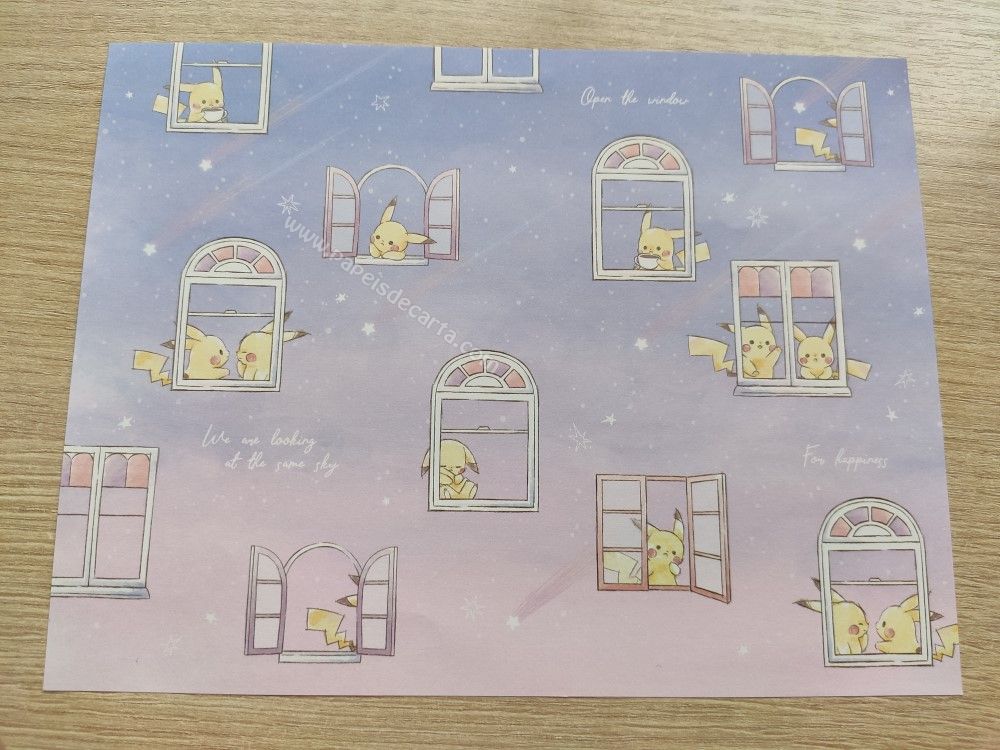 Conjunto importado, de papel de carta com 2 folhas diferentes e 1 envelope da Coleção Pikachu.