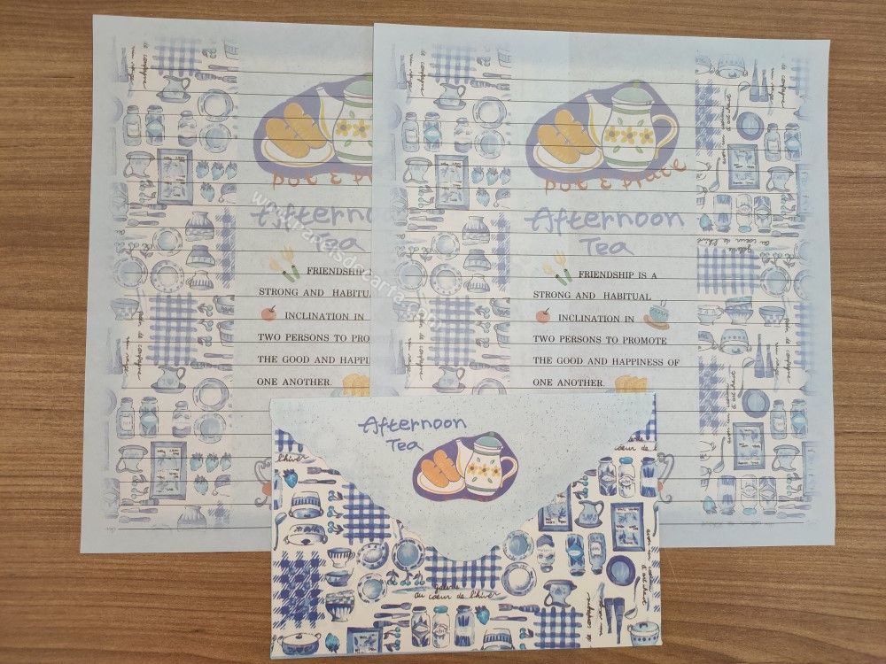 Conjunto importado, de papel de carta com 2 folhas iguais e 1 envelope.
